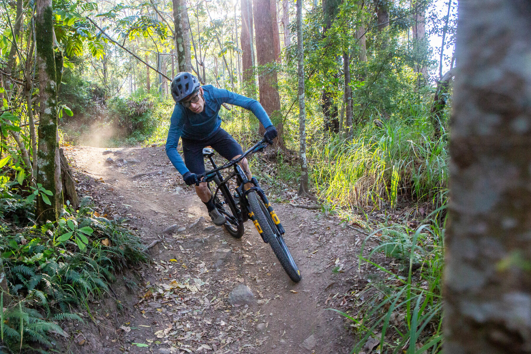 The build I put together is very nice; it was no surprise the Timberjack felt great from the get-go. With a low-rise bar, plus 120mm fork, 2.4-inch tyres with tyre inserts and some burly brakes, I’ve had a ball letting the Timberjack run free on some of my local trails. The front end is direct and a longer travel fork would open even more lines on rougher terrain. The handling is forgiving without being lazy; it takes away any nervous feeling you might associate with riding a hardtail. The steep seat angle and long reach deliver a comfortable climbing position when things go up.