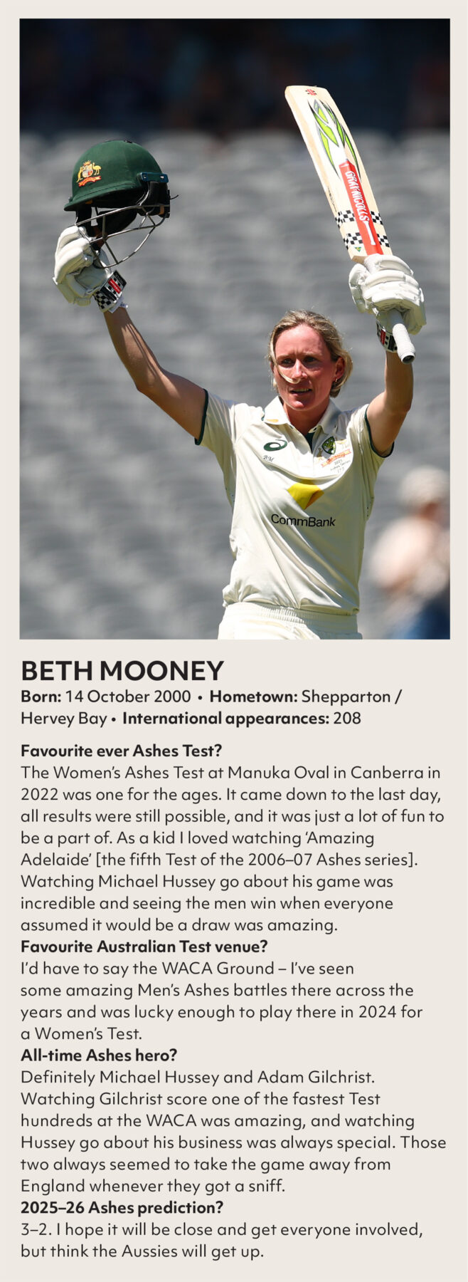 The combination of those three supporter groups alongside regular Test cricket aficionados pretty much guarantees full houses across the traditional Ashes venues. But which group creates the best atmosphere? “I’m gonna say the Barmy Army,” Gillespie says. “I’d love to say the Fanatics, but the Barmy Army are on a different level. Even though I’m an Aussie, I think they’re wonderful for the game of cricket. They make an Ashes summer. Even if they give us Aussies some stick and get stuck into us a bit, they get behind the English cricket team. I think it’s brilliant for the game. It’s part of the tapestry.”