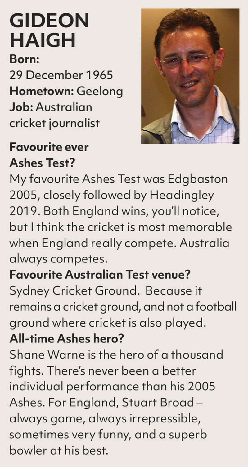 Supporters help set the tone, but what truly sustains The Ashes is its tradition and meaning. Haigh explains why: “The Ashes doesn’t always produce the best cricket – sometimes it’s downright uninspiring,” he says. “But when it’s good, it pops, because it slots into such a pantheon of greats and ancient inheritance. In a time when there’s an anxiety about causing offence, it also allows for pretty free expression. I like that line from Sir Robert Menzies about the two countries knowing each other so well that they don’t have to be too polite to each other. Part of its durability is the fixedness of the five-Test duration. It hasn’t compromised. It hasn’t obviously commodified. It still lays claim to what it’s always had, and that confidence about itself is infectious.”