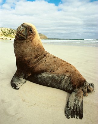 Amassing in colonies along the South Australian and Western Australian coastlines, the Australian sea lion was relentlessly hunted until the 1920s and the population has never recovered. Feeding on most small marine animals from molluscs and crustaceans to cephalopods and fish, the sea lion controls the population of many animals in its ecosystem, making it another keystone species. Currently they number between 9000 and 12,000 animals.
