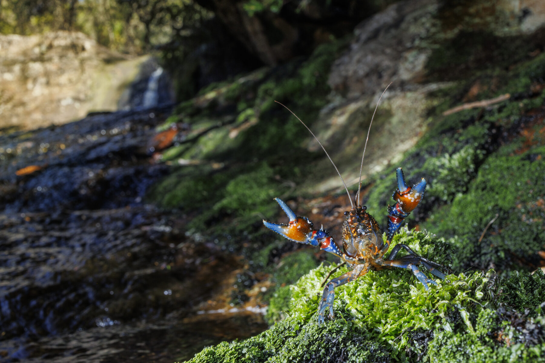 Below the subtropical rainforest canopy of the Illawarra escarpment lives a group of secretive and surprisingly stunning creatures that few people are aware of. But if you know what to look for, there are telltale signs of their presence in creeks and streams throughout the forest here – burrows along banks and under rocks, each with a small pile of excavated dirt and gravel on its doorstep.