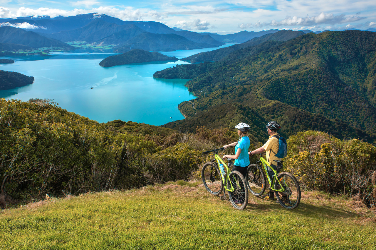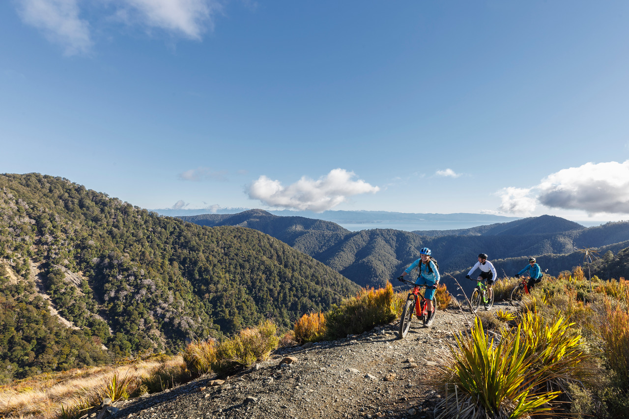 The trail begins with a boat ride from Picton to historic Meretoto/Ship Cove, a sheltered site that holds deep significance for Māori people and where British explorer Captain Cook anchored frequently during his 1770s’ voyages. Here, riders are quickly immersed in coastal forest and tackle ridgeline ascents that provide panoramic views over the bays and islands of Queen Charlotte Sound/Tōtaranui.