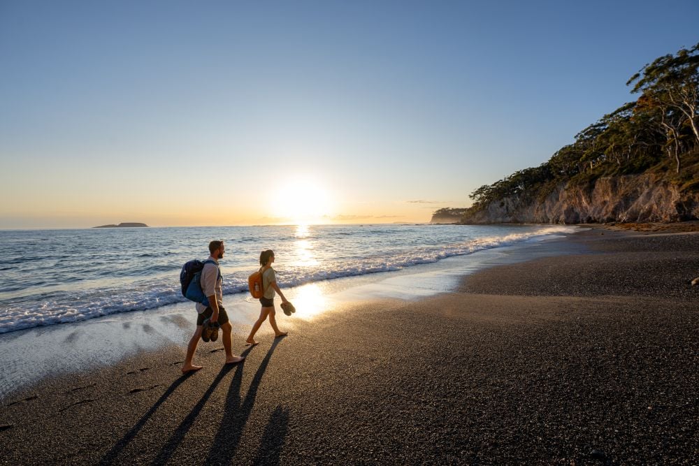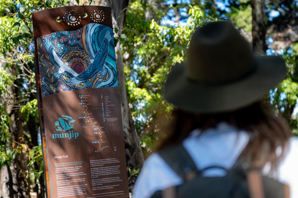 The Munjip Trail is a 15–18km coastal walk linking beaches, headlands and townships from Batehaven to McKenzies Beach, just south of Batemans Bay. Rated Grade 3, it suits day walkers, runners and families. The route passes surf breaks, lookouts and reserves, with opportunities to swim, fish or snorkel. Interpretive signs, artworks and audio guides share Walbunja Yuin Stories developed with local Elders.