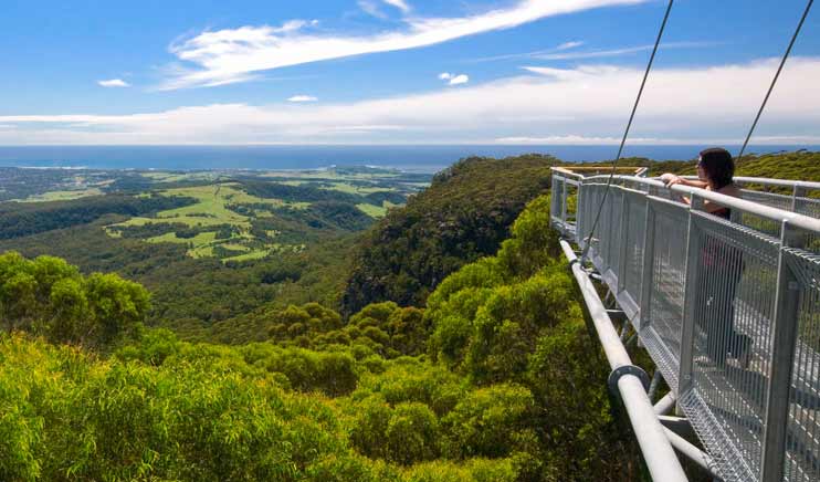 The impressive sandstone cliffs of the Illawarra escarpment in New South Wales are the backdrop of the Illawarra Fly Treetop Walk. Take in the beauty of the rainforest as you wind your way along elevated steel platforms 30m above the ground.